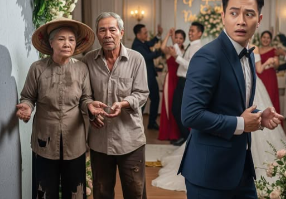 Ngày cưới đến, ánh đèn lộng lẫy, hoa tươi rực rỡ, khách mời cười nói rộn ràng. Tôi và Thắng đứng trên sân khấu, trao nhẫn, hứa hẹn trăm năm. Nhưng giữa dòng người, tôi chợt nhận ra một hình ảnh kỳ lạ: một cặp vợ chồng già, ăn mặc rách rưới, đứng nép ở góc phòng. Người đàn ông gầy gò, tóc bạc, tay cầm gậy trúc run rẩy. Người phụ nữ bên cạnh ôm một chiếc túi vải cũ, ánh mắt buồn bã nhìn về phía chúng tôi. Họ trông lạc lõng giữa không gian sang trọng, như hai cái bóng bị lãng quên. Tôi khẽ hỏi Thắng: “Anh, hai cụ đó là ai? Sao lại đứng đó?” Thắng thoáng giật mình, nhưng nhanh chóng đáp: “Chắc là người ăn xin lẫn vào tiệc. Để anh bảo nhân viên xử lý.” Tôi ngăn lại: “Thôi, để em mời hai cụ ngồi, tội nghiệp.”