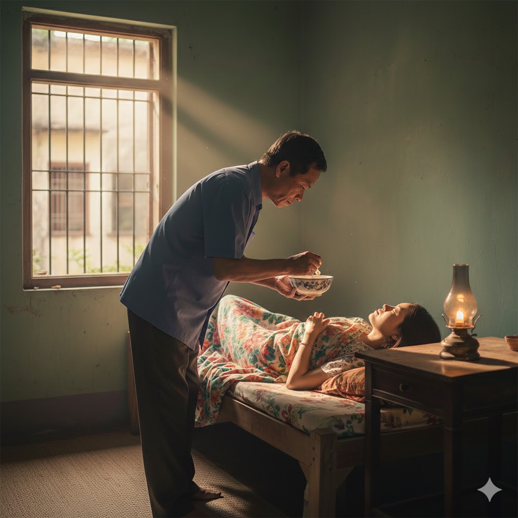 Từ ngày Thảo nằm l/i/ệt giường, tôi xin nghỉ việc dài hạn. Từng thìa cháo, từng miếng băng, từng lần xoay trở lau người – tôi làm hết. Căn nhà nhỏ dần biến thành nơi điều trị tại gia với đầy đủ thuốc men, thiết bị, và mùi sát trùng. Nhiều người thương tình khuyên tôi gửi cô vào trung tâm chăm sóc, nhưng tôi chỉ lắc đầu: “Vợ tôi, tôi chăm. Không ai thay được.”