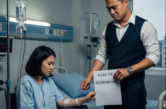 Ngọc run run cầm bút, từng dòng chữ như những nhát dao cứa vào lòng. Chị không oán trách, chỉ thấy nghẹn ngào. Viết xong, chị nhận tiền, rối rít cảm ơn rồi quay về bệnh viện làm thủ tục phẫu thuật.