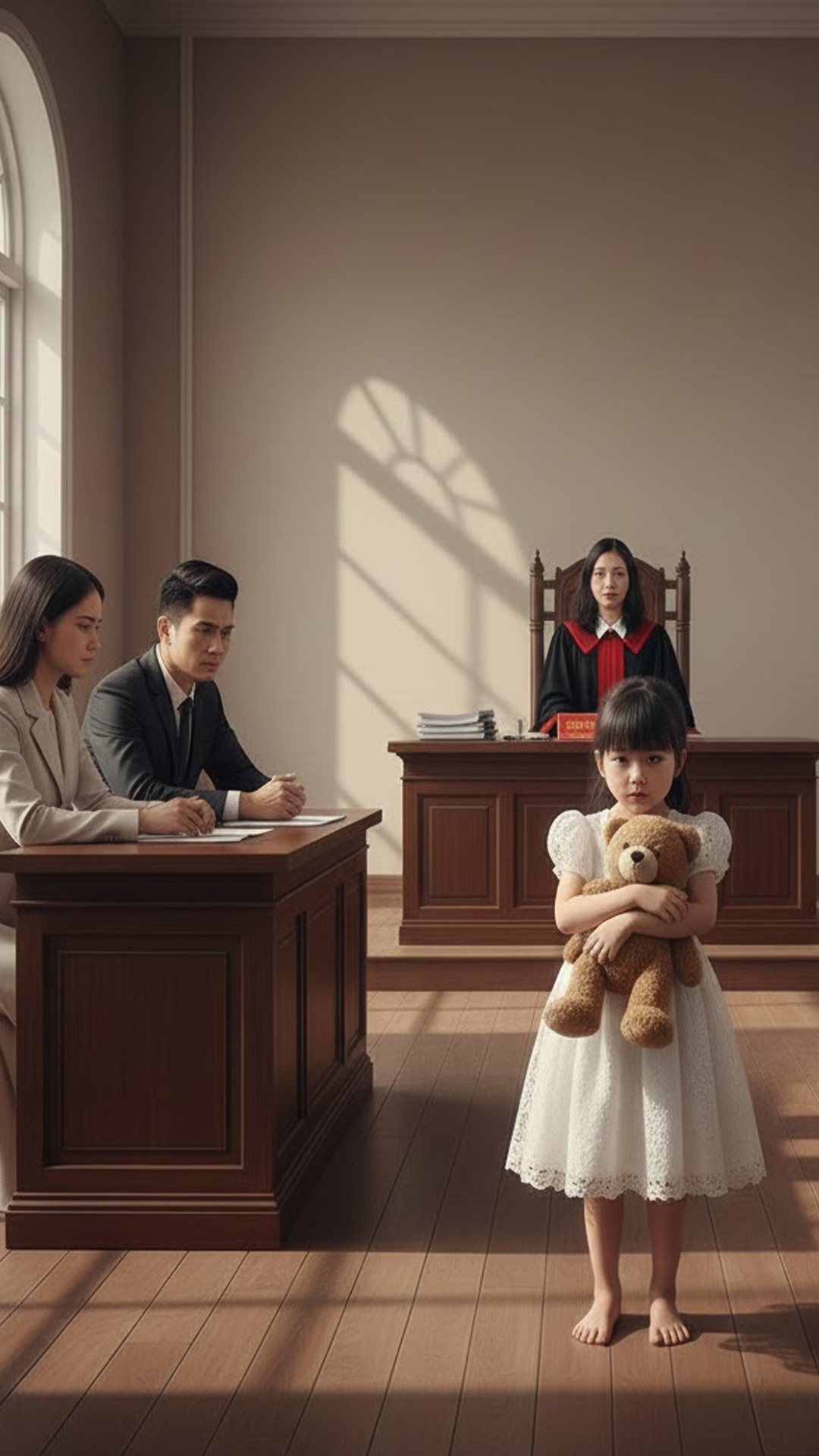 Phòng xử án không lớn.Thẩm phán là một người đàn ông trung niên, giọng nghiêm nhưng không lạnh.