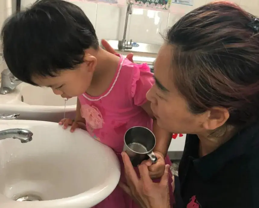Nghe tiếng con, người mẹ lập tức chạy vào phòng. Sau khi hiểu rõ sự việc, cô không hoảng loạn hay vội cho con ăn uống mà nhanh chóng súc miệng cho trẻ bằng nước ấm, làm sạch khoang miệng rồi đưa con đến bệnh viện.