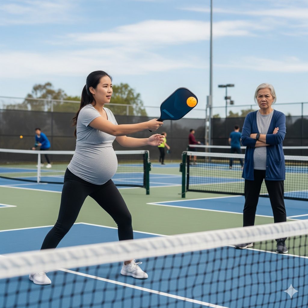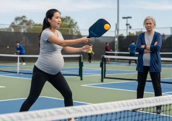 Tôi có đứa con dâu đang mang bầu ở tuần 38, bụng đã to vượt mặt. Thế mà mấy hôm nay, trời nắng chang chang, nó vẫn hăng hái xách vợt đi chơi pickleball với bạn bè. Tôi nhìn mà sốt ruột, nhắc nhở: