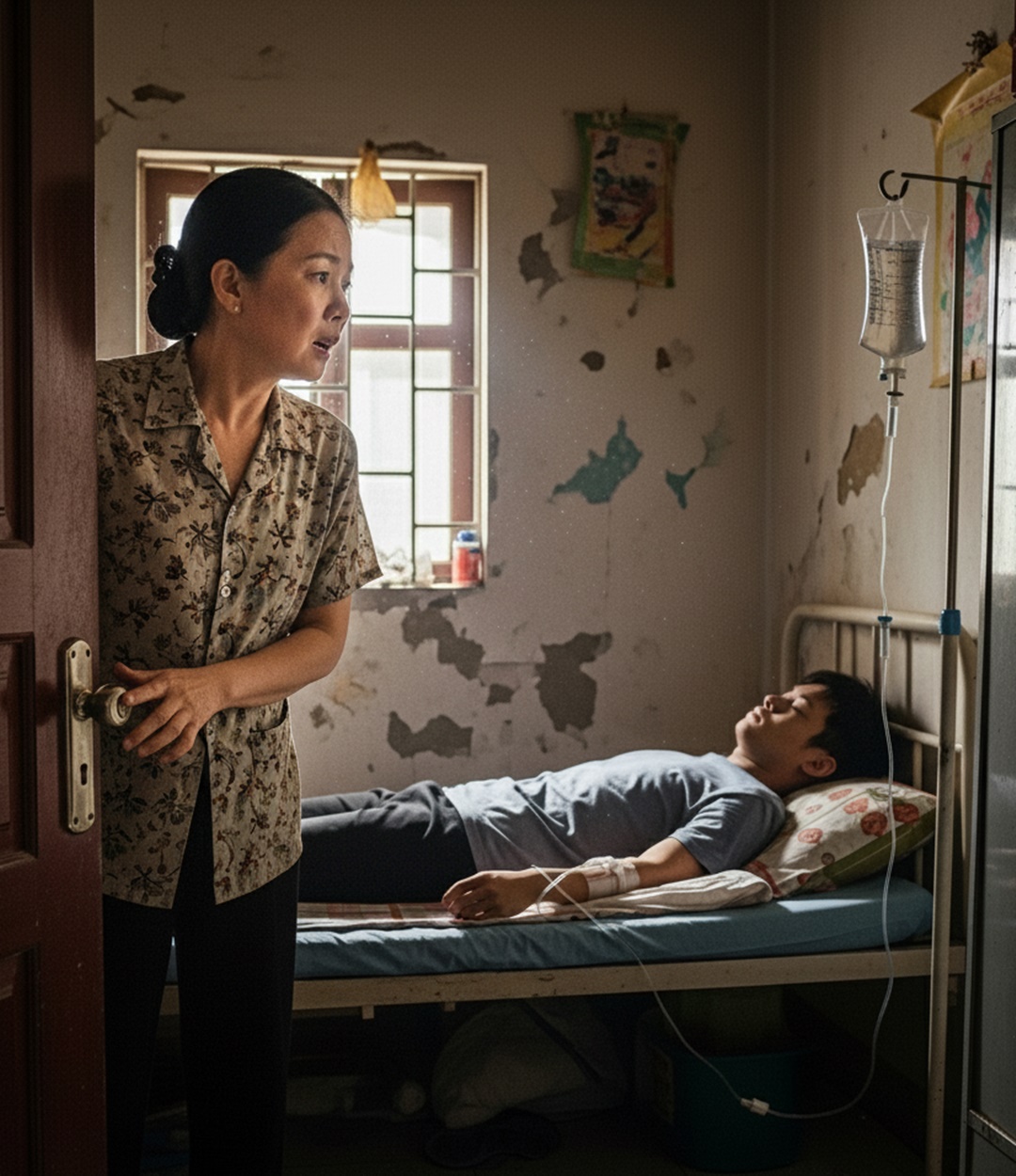 “Trời ơi! Con tôi làm sao thế này?” – Bà Hạnh lao tới, ôm lấy đầu con. Tùng mê man, miệng lảm nhảm: “Đừng… đừng nói với mẹ… con ổn…”. Cô hàng xóm tên Lan đứng dựa cửa, nước mắt chực trào, bắt đầu kể lại sự thật kinh hoàng mà Tùng đã giấu kín suốt 3 tháng qua.