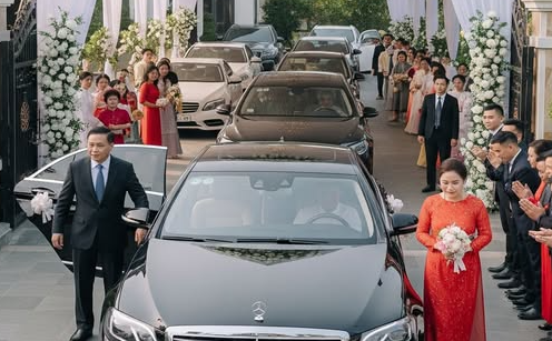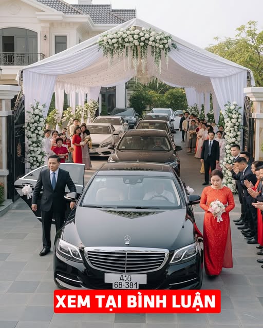 Nhưng đúng 11h45, trong lúc lễ cưới đang lên nhạc cao trào, một dàn xe siêu sang bỗng xuất hiện trước cổng: