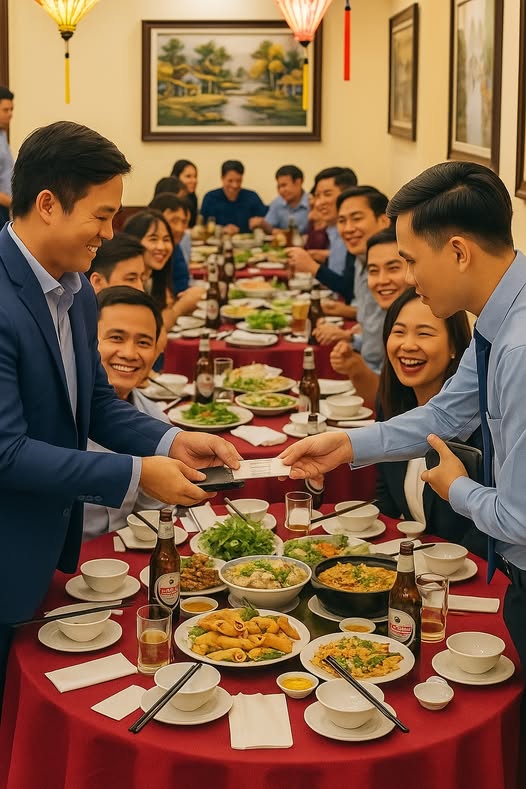 Tám người bạn cũ xuất hiện, nhưng điều khiến tôi bất ngờ là không ai đi một mình. Người thì dắt theo chồng, người dẫn vợ, có người còn kéo cả con cái, tổng cộng gần hai mươi người ngồi chật kín ba bàn tiệc. Tôi thoáng chốc ngỡ ngàng, nhưng rồi tự nhủ: “Thôi, đông vui càng tốt. Lớp mình mà, phải chơi lớn!”. Khi người phục vụ đưa hóa đơn, con số hơn ba chục triệu khiến tôi hơi khựng lại, nhưng ánh mắt chờ đợi của cả nhóm khiến tôi mỉm cười, rút ví thanh toán toàn bộ. Tiếng vỗ tay rộn rã vang lên, bạn bè liên tục khen: “Minh đúng là lớp trưởng đỉnh cao, hào phóng quá trời!”. Tôi gật đầu, lòng ấm áp, nghĩ rằng mình đã làm tròn vai trò người kết nối.