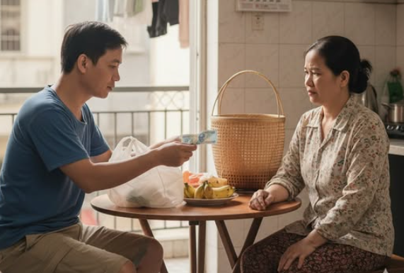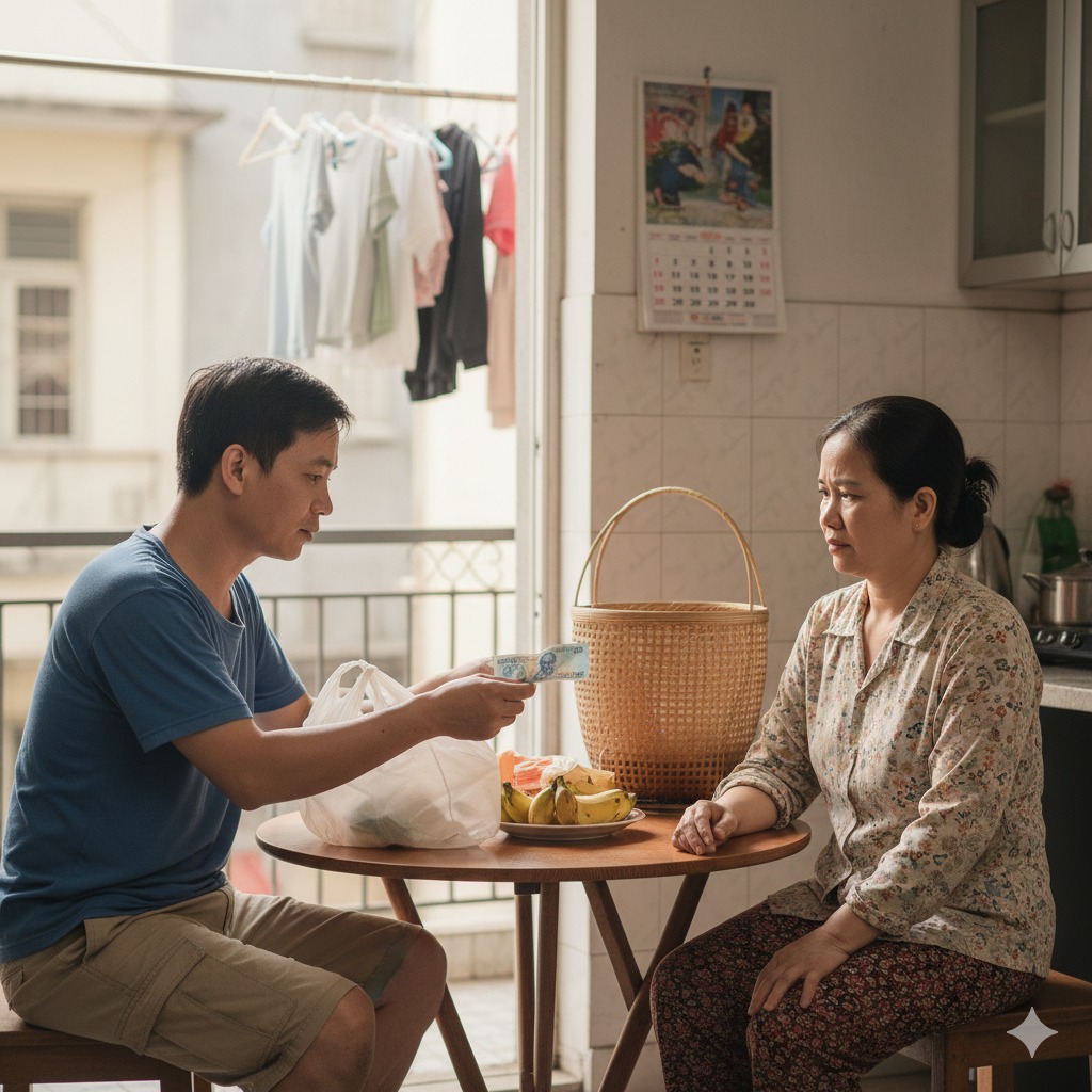 Mai – vợ anh – lẳng lặng cầm, không nói gì. Ba mươi nghìn, vừa đủ mua vài lạng rau, ít thịt vụn, thêm bó hành. Hôm nào khéo lắm mới dư được mấy đồng lẻ.