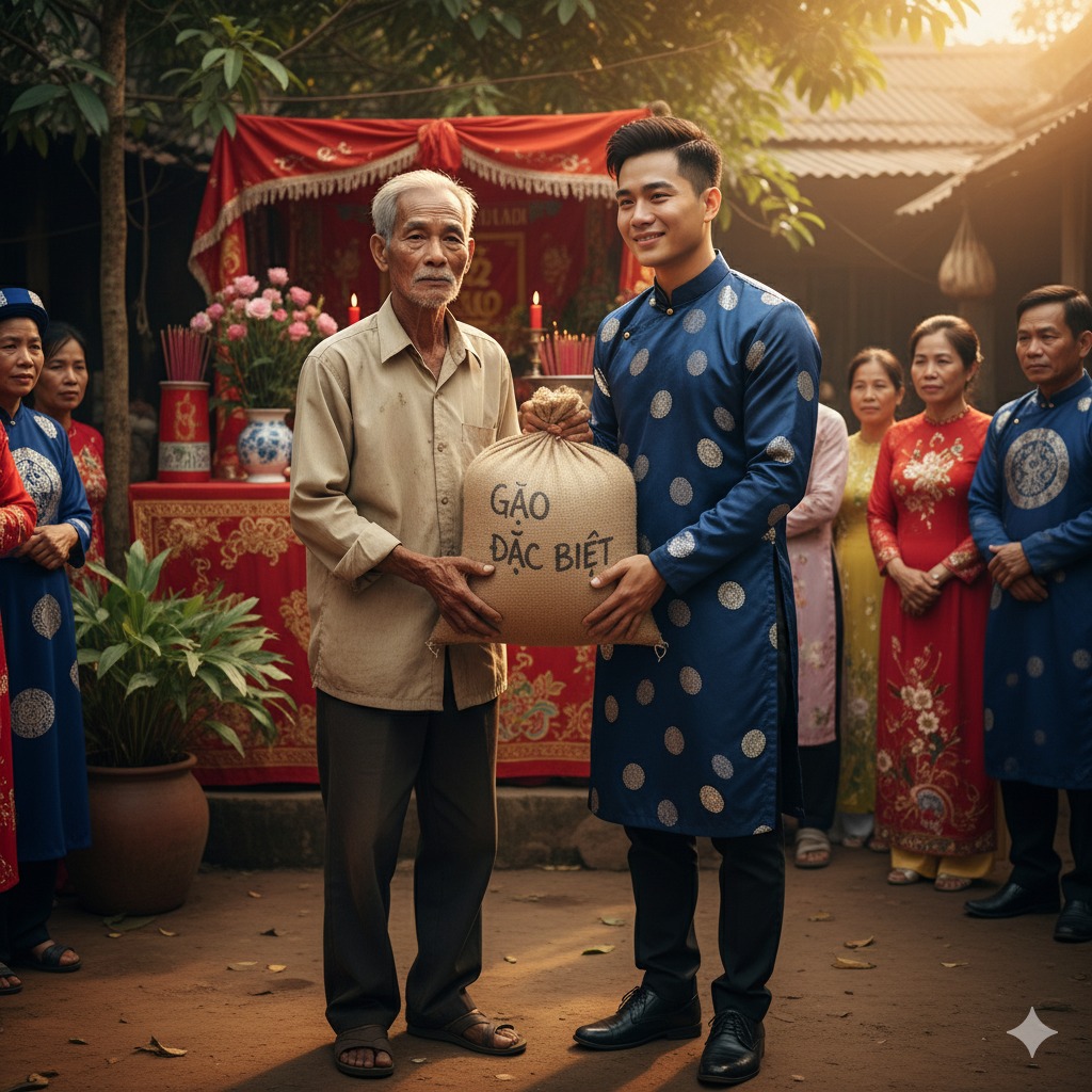 Ngày cưới tôi, trong khi bạn bè được cha mẹ trao vàng vòng, tiền bạc, còn tôi chỉ nhận được từ cha một món quà: một bao gạo nặng trĩu.