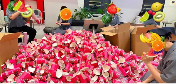 Chuỗi trà sữa T.P. in khoảng 10.000 ly giấy có gắn artwork để phục vụ kinh doanh, trong đó khoảng 1.000 ly đã được bán ra dịp Tết. Ảnh: P.M.