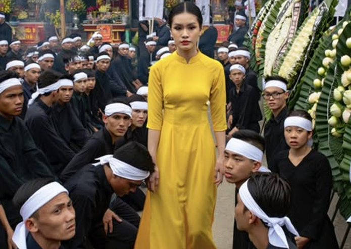 Đôi mắt đỏ hoe, sưng húp của Nhung chứng tỏ em đau lòng và khóc rất nhiều. Dù vậy, hình ảnh nhanh nhẹn, thoăn thoắt với màu váy vàng rực rỡ đi qua đi lại, rành rọt chỉ đạo tang lễ vẫn khiến mọi người nhìn vào có chút khó hiểu, thậm chí không ưa.