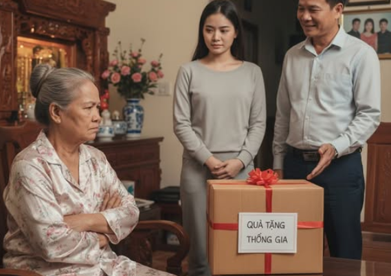 Sinh nhật bà Tư, tôi đến chúc mừng. Mang theo một giỏ quà lớn: bánh, sữa, ít trái cây và một chiếc hộp giấy gói cẩn thận.