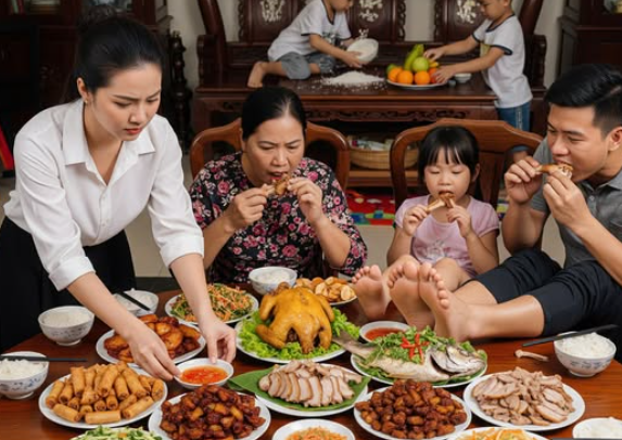 Tôi đứng chết trân, trong người máu như sôi lên. Tôi chuẩn bị cả buổi, chỉ mong một bữa cơm ấm áp bên mẹ ruột, vậy mà trong phút chốc bị biến thành “mâm cỗ gia tộc” bất đắc dĩ. Tôi nén nhịn, nhưng cảnh mẹ chồng thản nhiên dắt cả họ nhà mình bước vào, hất hàm chỉ đạo bày ghế, bốn đứa cháu thì leo trèo phá phách, tôi cắn răng đến nỗi máu trong miệng dâng lên.
