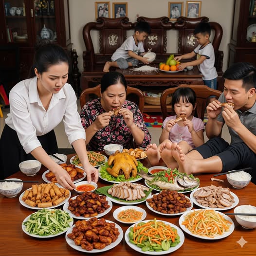 Tôi đứng giữa cảnh hỗn loạn ấy, tim đập dồn dập, mắt hoe đỏ nhưng vẫn ngẩng cao đầu. Trong khoảnh khắc đó, tôi nhận ra, không còn là chuyện một mâm cơm nữa, mà chính là giới hạn cuối cùng của lòng tự trọng bị chà đạp.