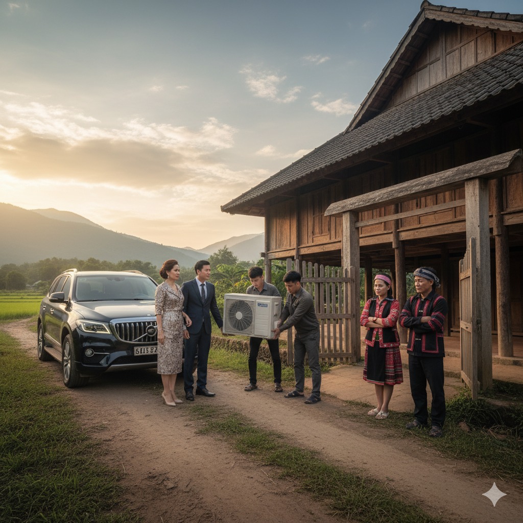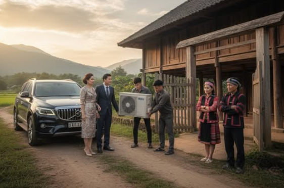 Ngày họ lên, cả bản bàn tán: “Bố mẹ cô ấy giàu thật, mua điều hoà lên tận đây.” Mẹ chồng tôi vẫn khẽ cau mày, tỏ ý chê bai, còn tôi thì vừa biết ơn vừa xấu hổ. Bố mẹ tôi bận rộn lắp đặt từ sáng đến chiều, vừa nói vừa lau mồ hôi: “Con sắp được ngủ thôi, mẹ mừng lắm.” Bà Súa đứng nhìn, mặt mũi vẫn khó chịu nhưng không nói lời nào.